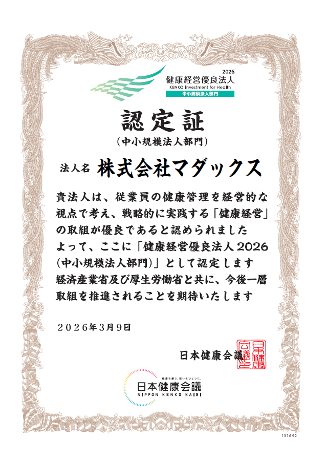 当社はこのたび、経済産業省および日本健康会議が選出する「健康経営優良法人2026(中小規模法人部門)」に認定され、